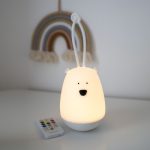 Prenosna : Nočna lučka Medvedek je prenosna in lahka s priročnim ročajem za enostavno prenašanje. Varna za uporabo, kjerkoli že ste - doma ali na poti, v posteljici ali v šotoru na kampiranju. Vgrajena baterija omogoča, da jo uporabljate tudi tam, kjer ni priklopa za elektriko.